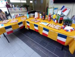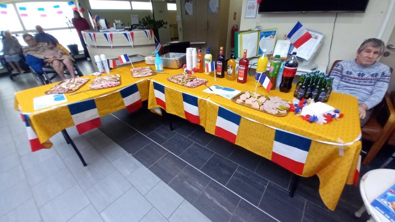 Un buffet « charcuterie » et des cocktails sans alcool étaient proposés aux résidents dans une ambiance musette.