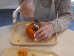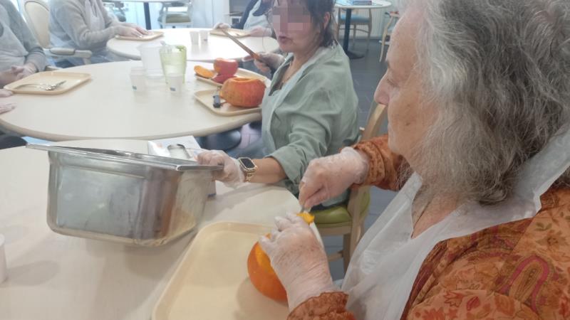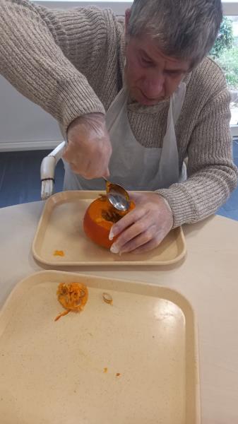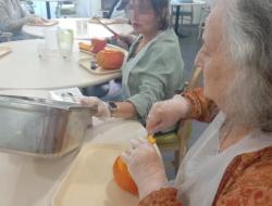 Six belles citrouilles ont été creusées avec l'aide d'un groupe de résidents.